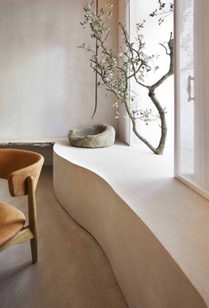 Đường nét, hình khối: Wabi-Sabi là sự kết hợp hoàn hảo giữa các đường thẳng mạch lạc và các chi tiết uốn lượn. Có thể nói giống như đa phần chúng ta tưởng tượng về cách thiết kế Nhật bản: toàn bộ những khu vực nhân tạo đều dùng đường thẳng, hình phẳng, viền mảnh – cực kỳ tối giản. Nhưng điểm nhấn trong không gian đến từ những hình khối uốn lượn. Sự uốn lượn ở đây thường bất đối xứng, phi logic, mang những hình dáng tự nhiên.